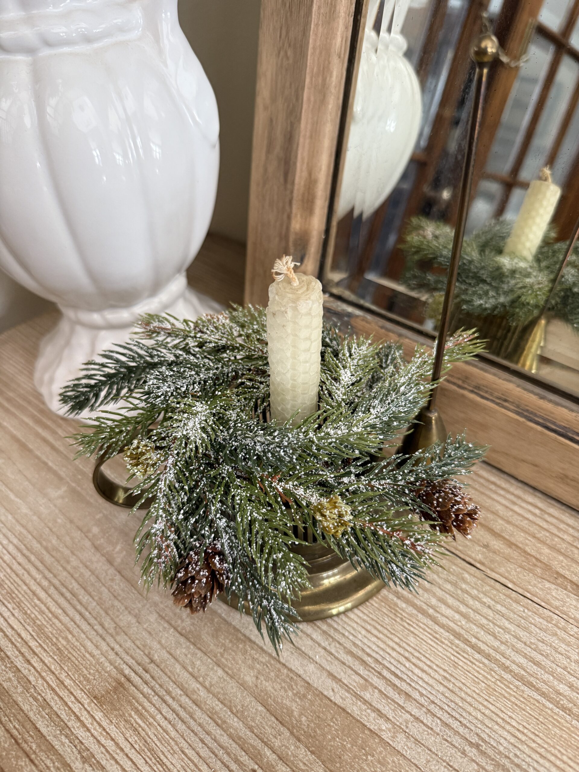 Frosted White Spruce Candle Ring 7 inch Candle Stick Size Country Style Candle Ring Faux Floral for Arrangements or Staging Floral Only -Floral Only